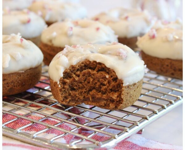 Vegan Gluten-Free Gingerbread Donuts with Candy Cane Frosting